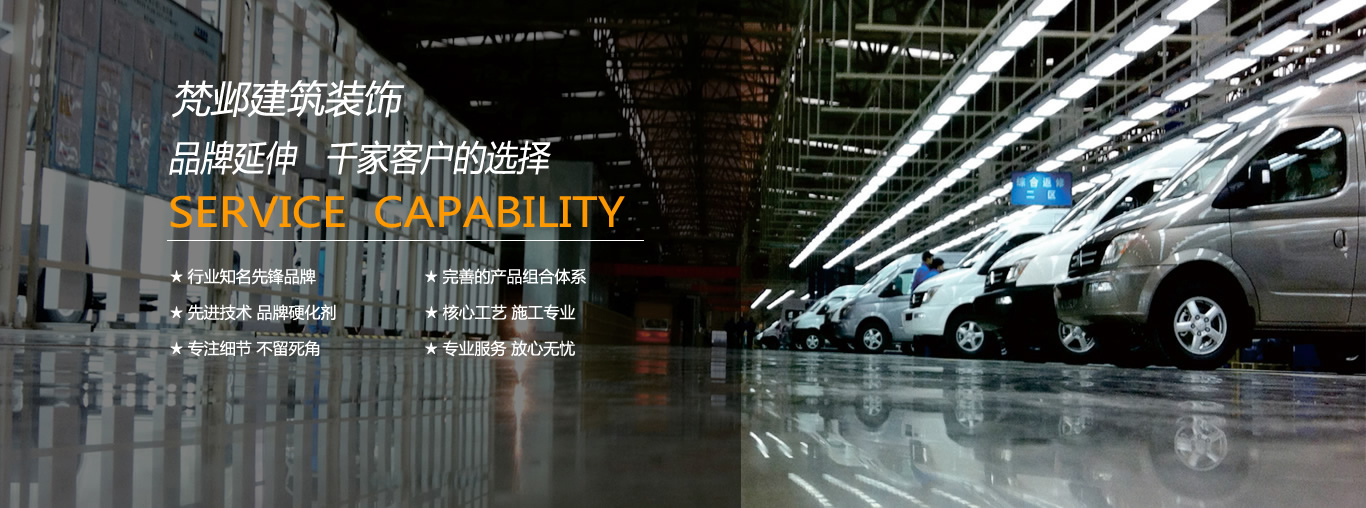 無錫梵鄴建筑裝飾有限公司產(chǎn)品主要分為:混凝土密封固化劑、環(huán)氧樹脂、耐磨硬化等工業(yè)、商業(yè)地面的表面處理。公司提供:環(huán)氧地坪、固化地坪、耐磨硬化地坪、工廠地坪、車庫地坪、倉庫地坪、地坪改造、水磨石硬化地坪等工程服務(wù)。經(jīng)過努力,公司積累了豐富的工程現(xiàn)場運行管理及施工經(jīng)驗,融匯了先進(jìn)的管理理念及服務(wù)模式,形成強(qiáng)大的工程配套服務(wù)優(yōu)勢,做出了優(yōu)異的工程業(yè)績。